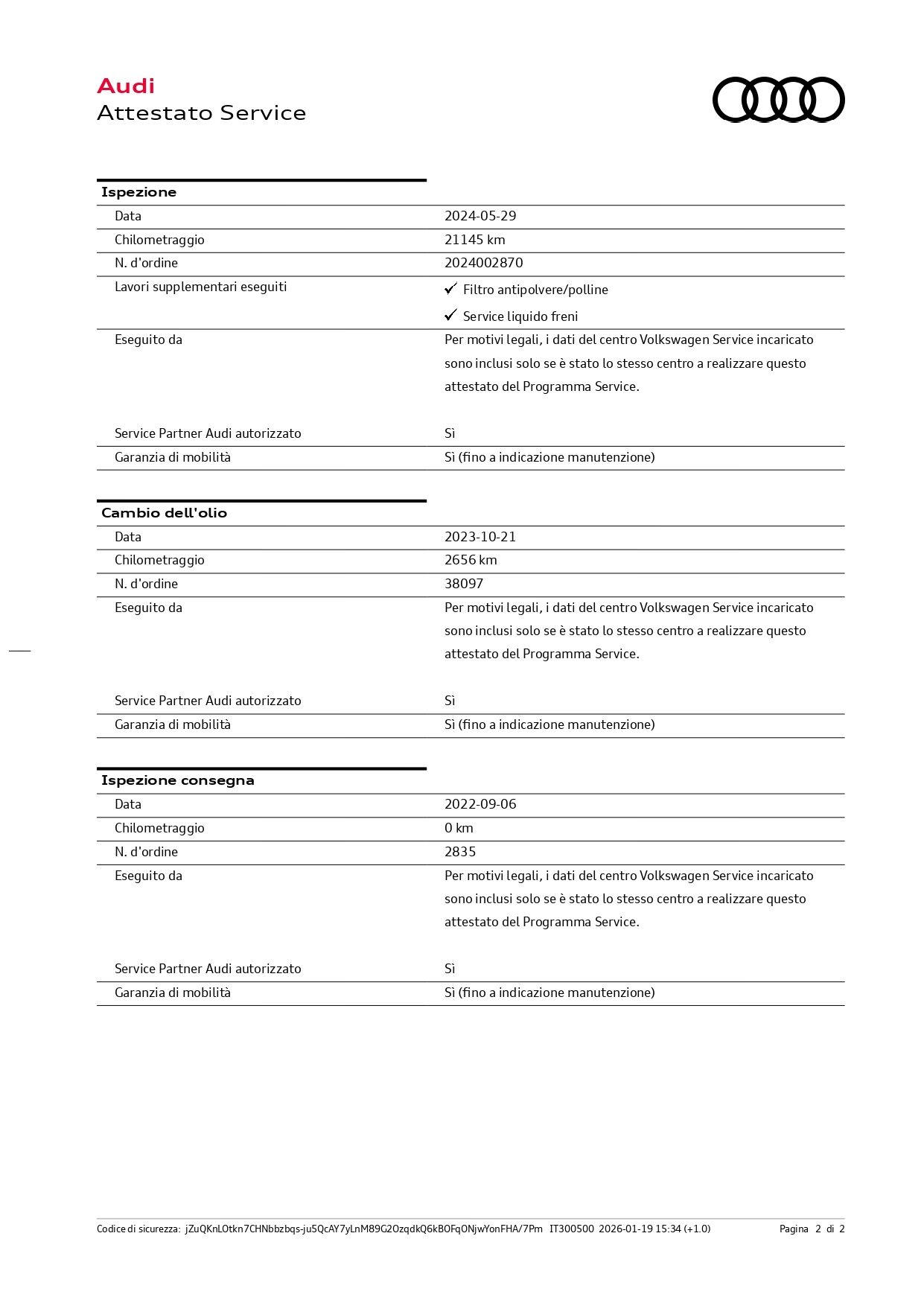 Chilometri certificati sempre.