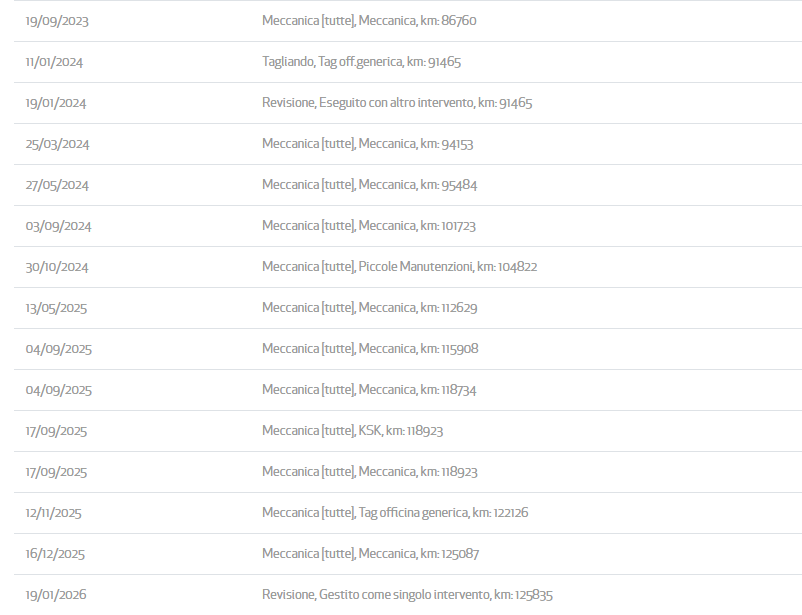 Da SEMPRE la nostra politica aziendale si basa sulla TRASPARENZA verso il cliente finale, pertanto esponiamo tutti i dati, le manutenzione gli interventi e le informazioni di questa vettura.