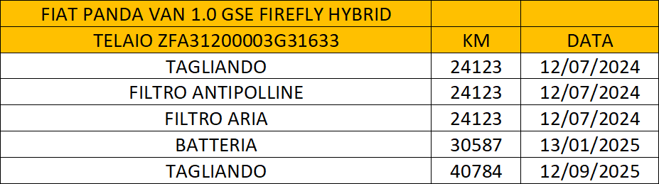 Fiat Panda VAN 1.0 FireFly Benzina 69cv EURO 6 – Anno 11/2021 – KM 43.824 Certificati