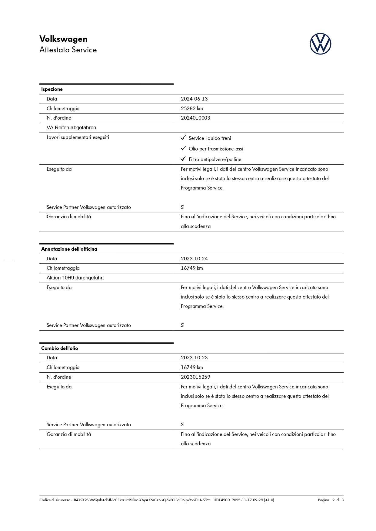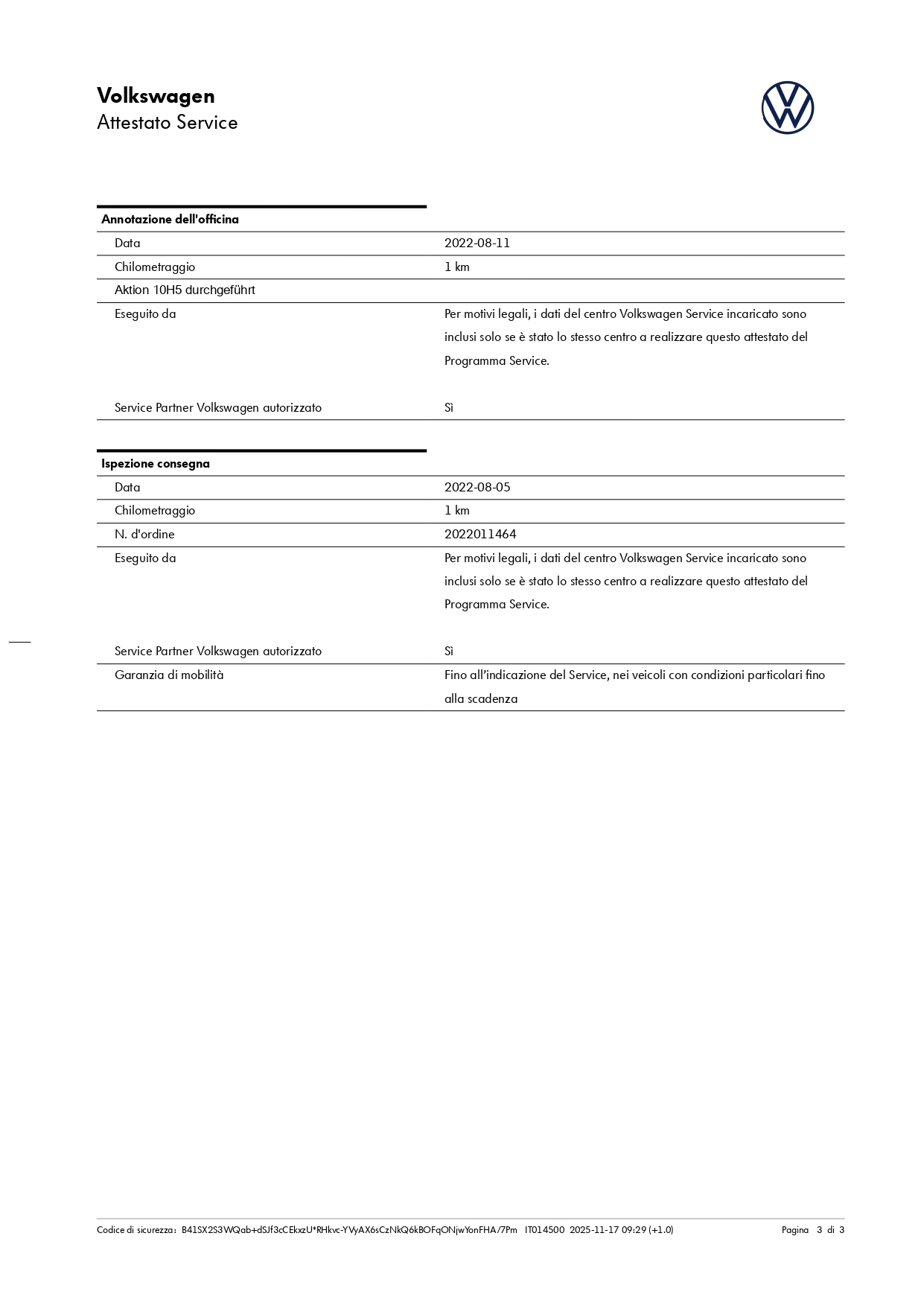 Chilometri certificati sempre.