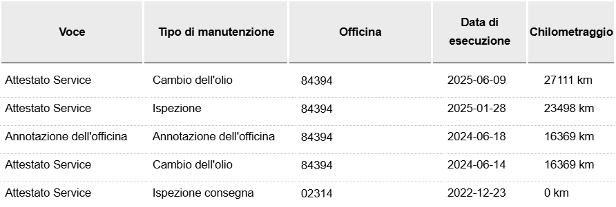 Da SEMPRE la nostra politica aziendale si basa sulla TRASPARENZA verso il cliente finale, pertanto esponiamo tutti i dati, le manutenzione gli interventi e le informazioni di questa vettura.