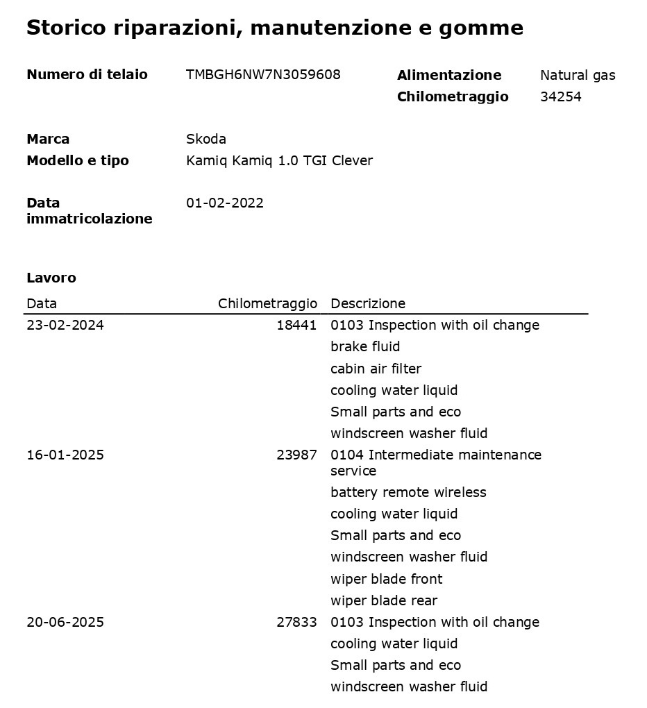 Inoltre riportiamo sia nel contratto, che nella fattura di vendita i chilometri percorsi. Importantissimo nell'acquisto delle auto usate richiedere al venditore lo storico manutenzioni con la relativa documentazione (libretto service - fatture diffidate da chi non ve li mette a disposizione.