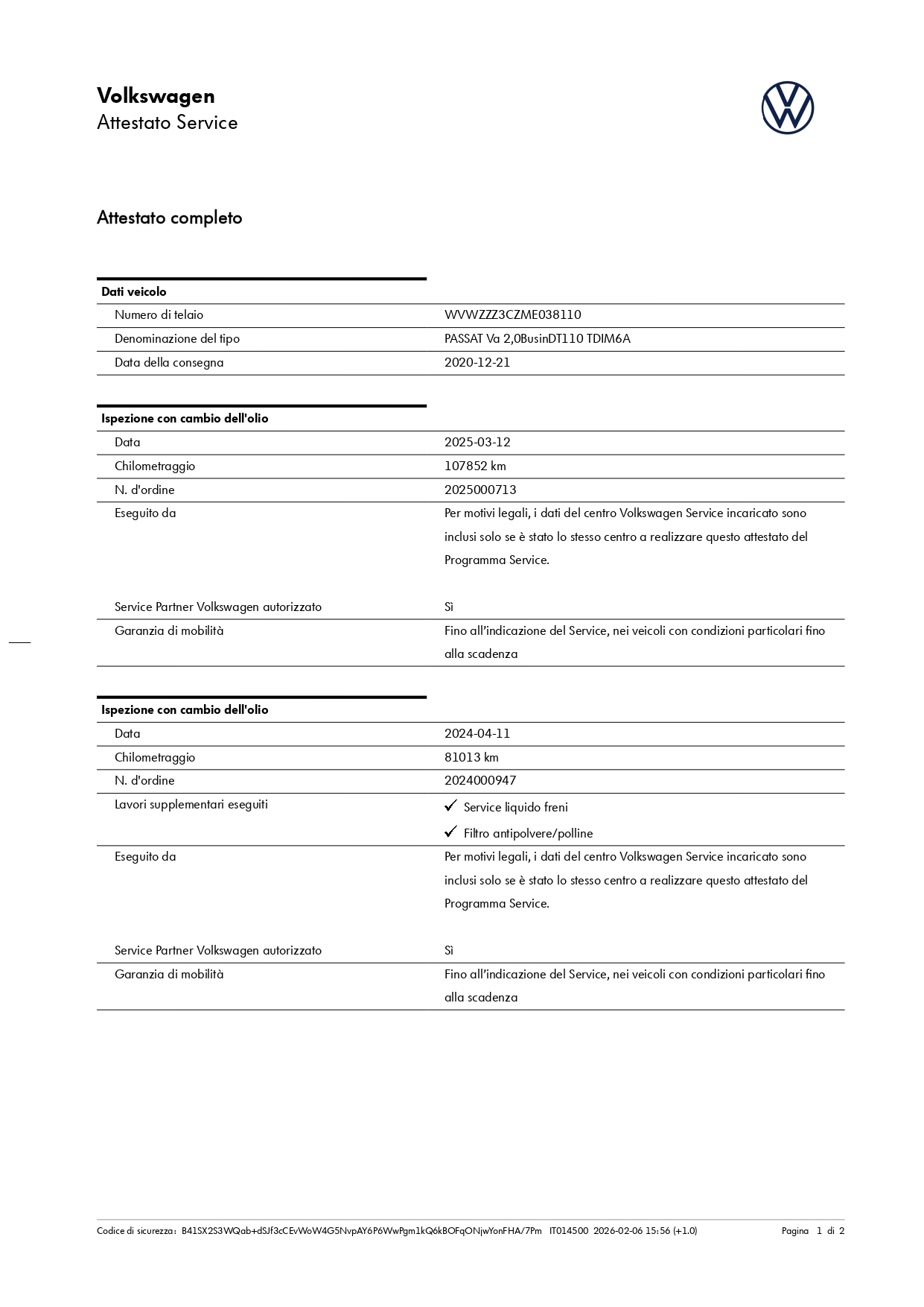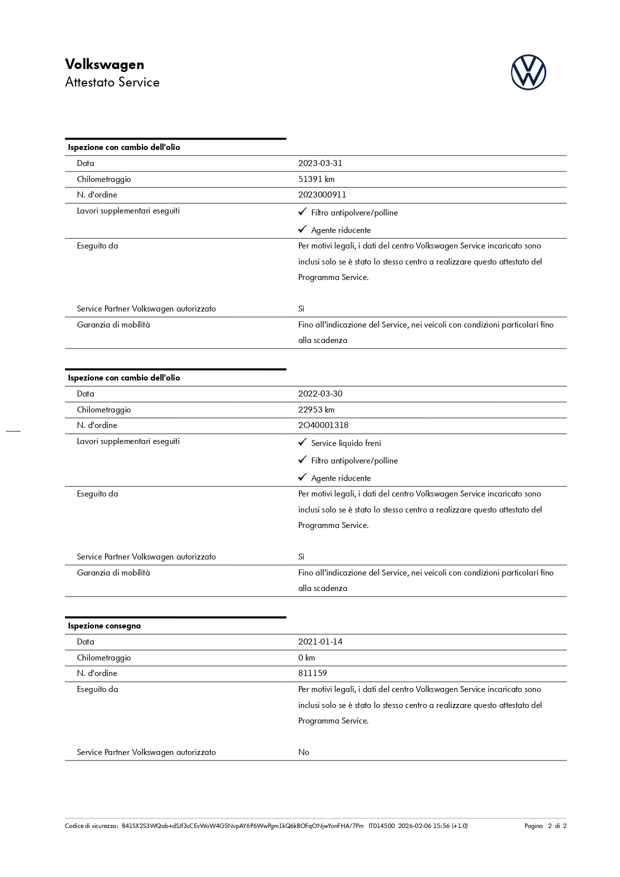 Chilometri certificati sempre.