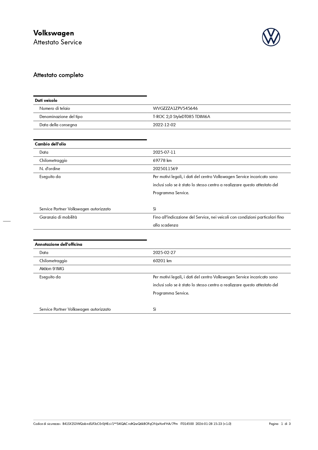 N. DI TELAIO: WVGZZZA1ZPV545646 -