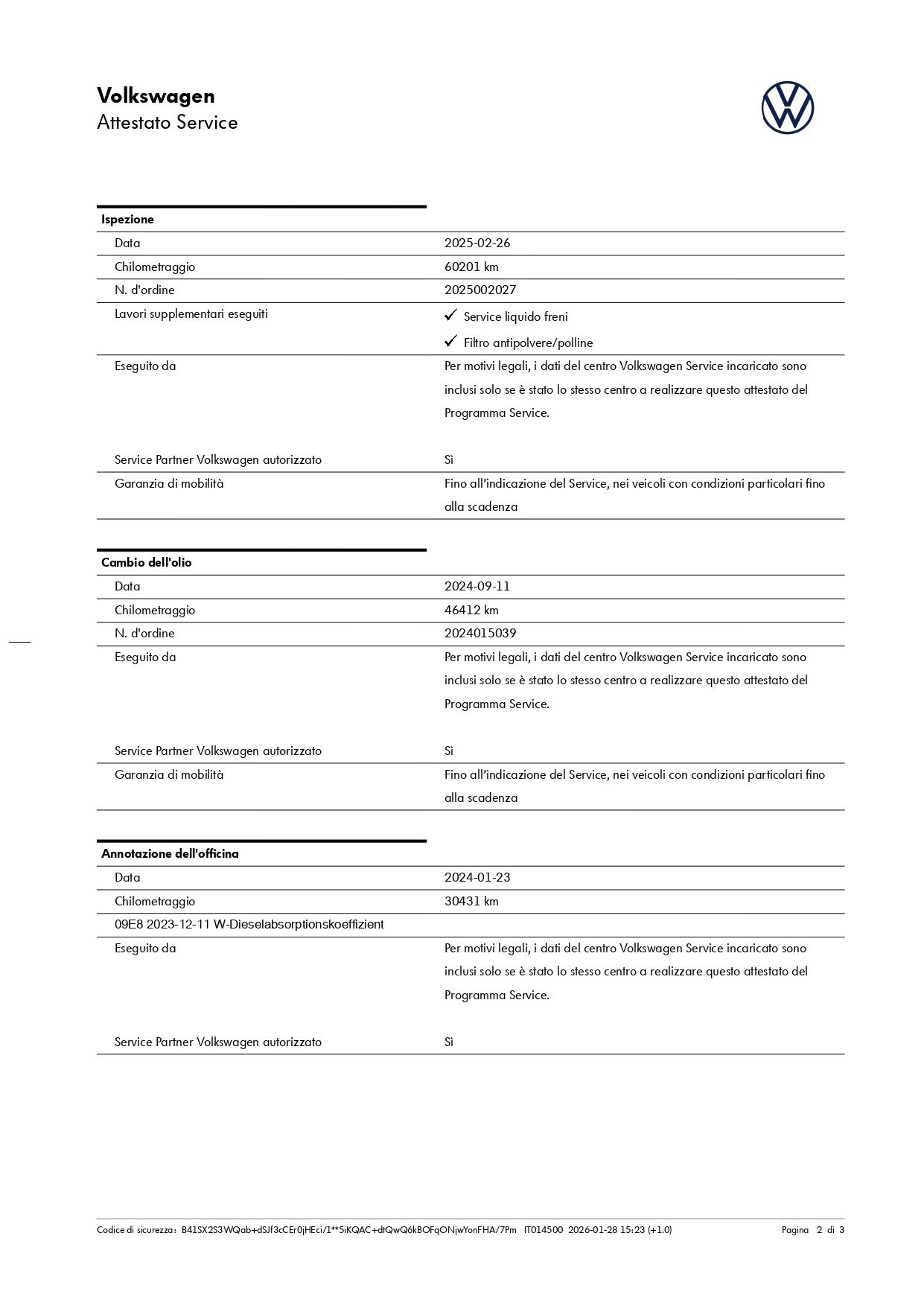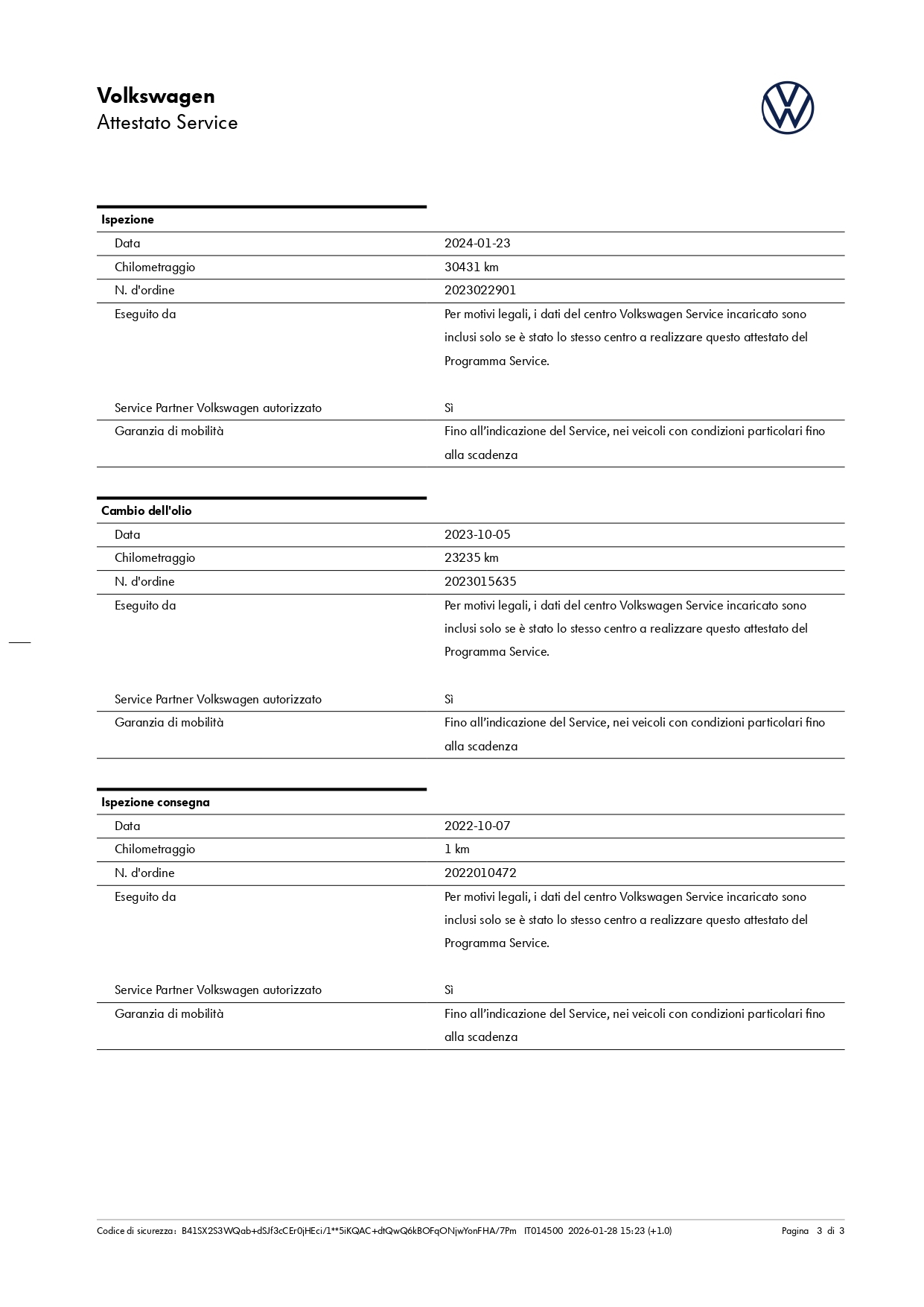 Chilometri certificati sempre.