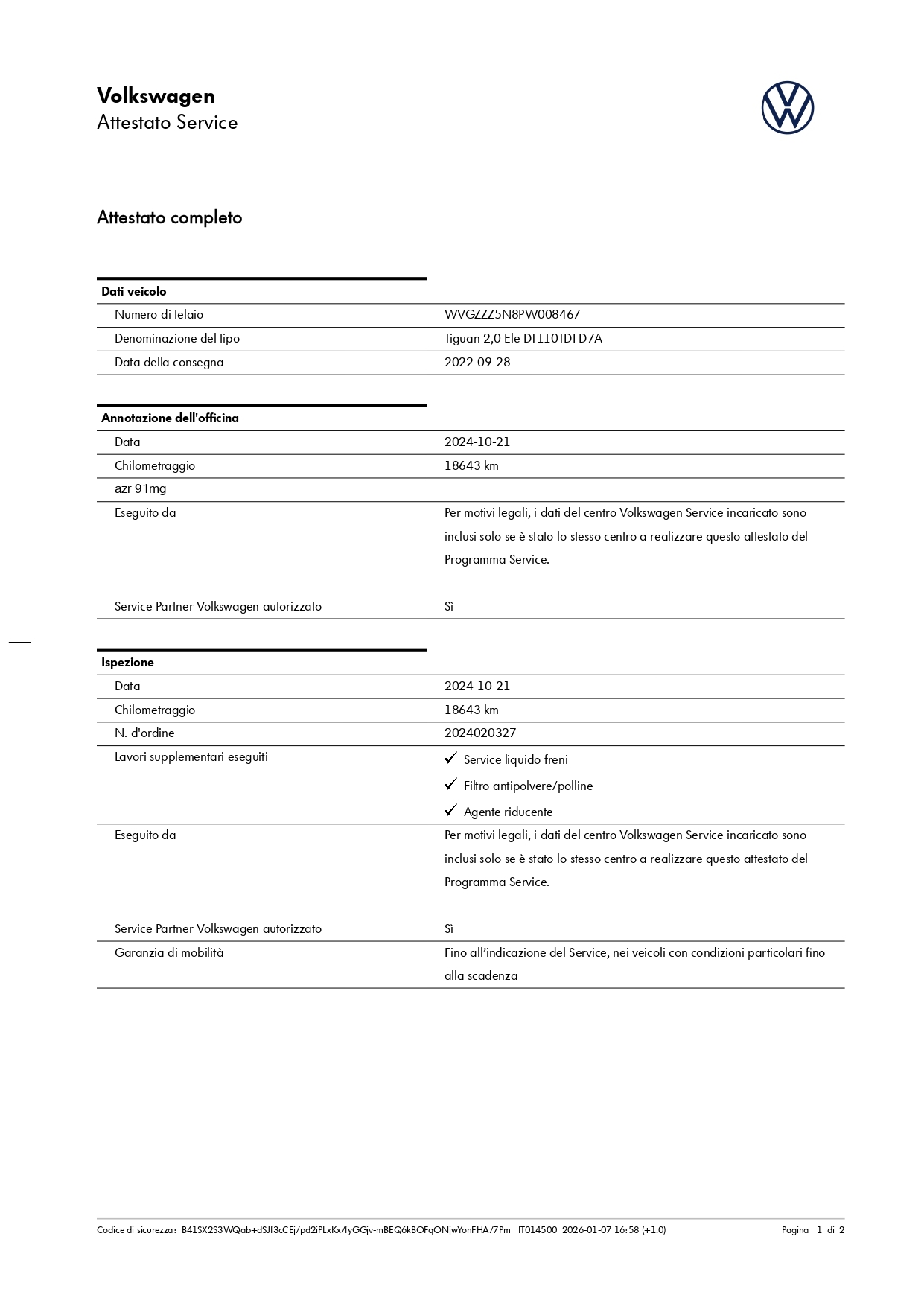 Chilometri certificati sempre.