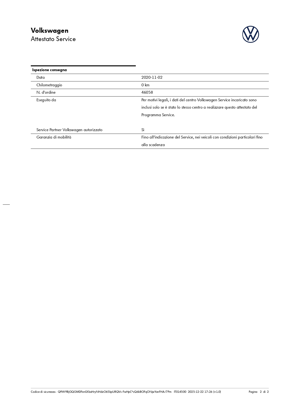 Chilometri certificati sempre.