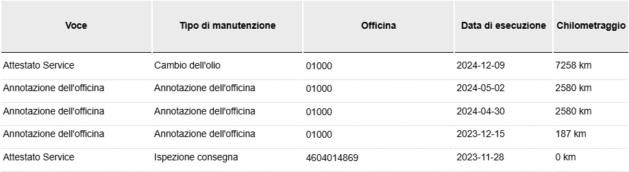 Inoltre riportiamo sia nel contratto, che nella fattura di vendita i chilometri percorsi. Importantissimo nell'acquisto delle auto usate richiedere al venditore lo storico manutenzioni con la relativa documentazione (libretto service - fatture diffidate da chi non ve li mette a disposizione.