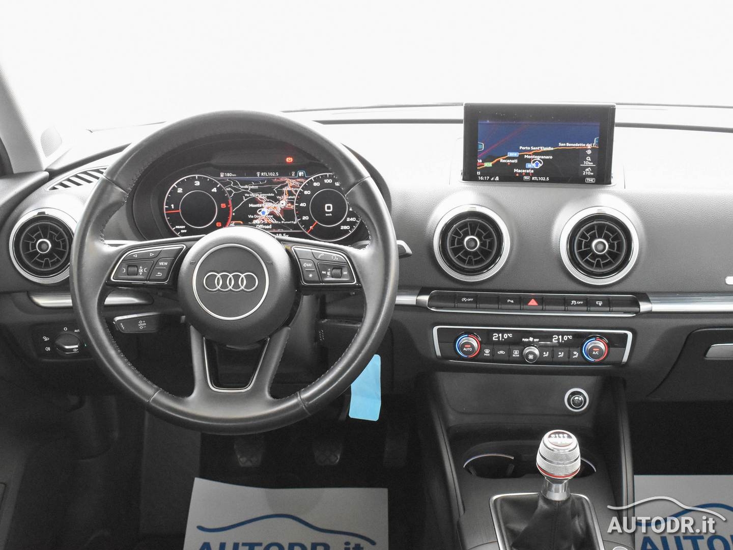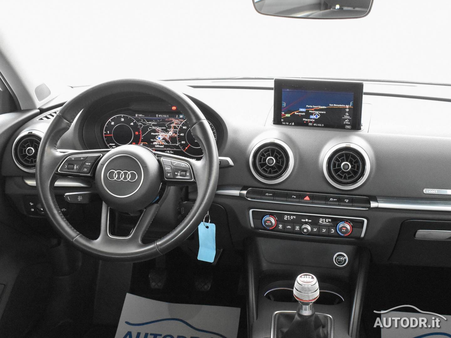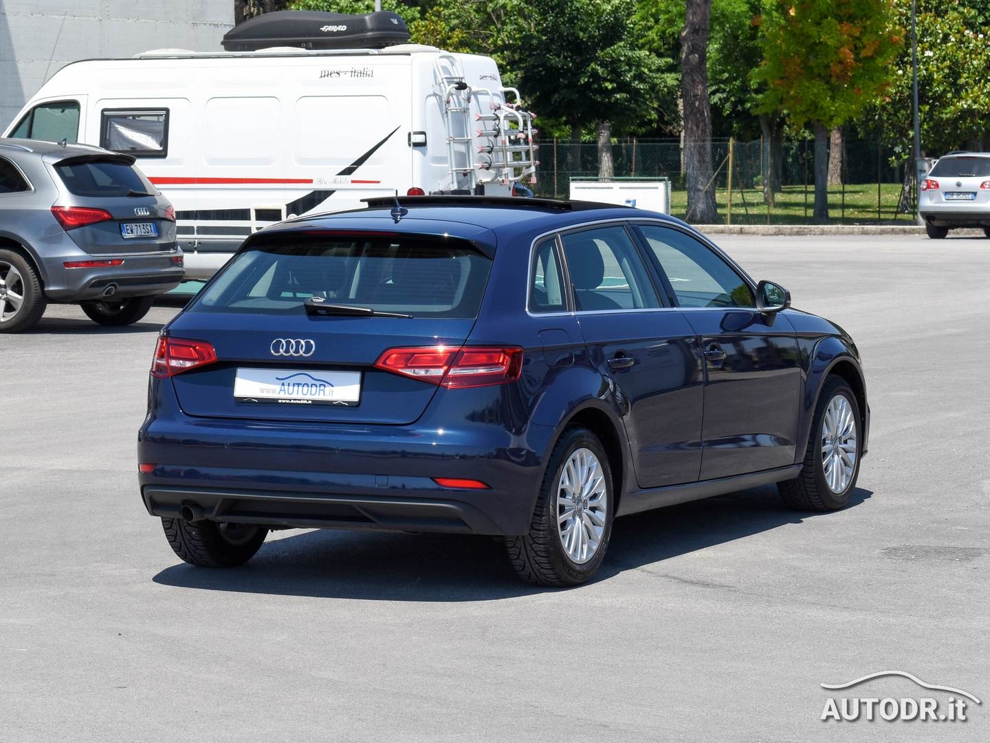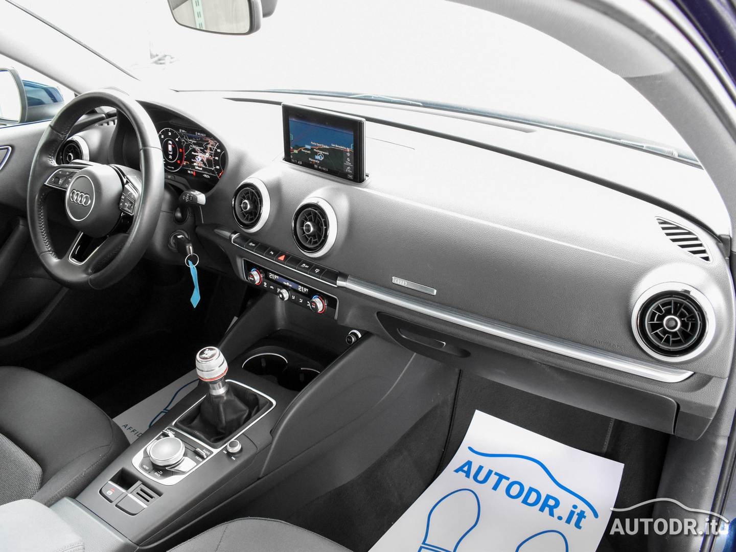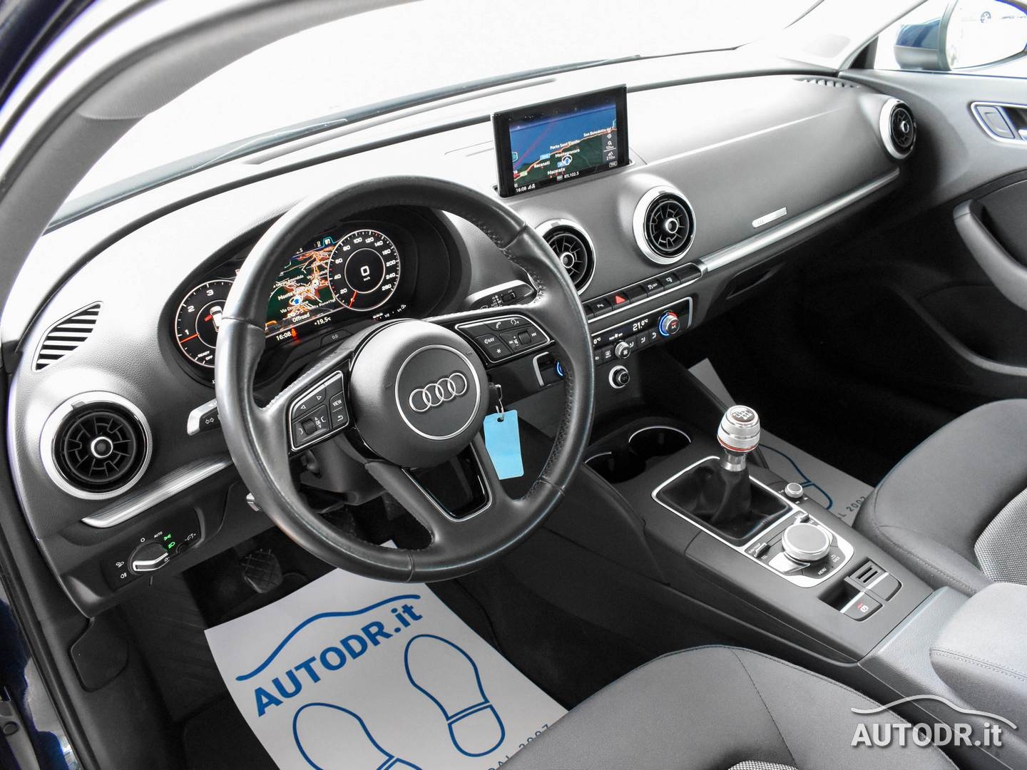 Audi A3 SportBack 1.6 TDI 110cv Business, Euro6, Cambio manuale 6 marce, anno 01/2017, km 112882 certificati con relativo storico manutenzioni, Colore Blu Cosmos Met con cromature esterne, Fari BiXeno LED, Audi VIRTUAL COCKPIT (Contachilometri interamente display digitale), Tetto panoramico apribile elettricamente, Volante sportivo multifunzione in pelle a 3 razze, Pomello del cambio in alluminio AUDI EXCLUSIVE, Inserti interni in alluminio Audi-Mistral, Climatizzatore automatico COMFORT BiZona con display, Pacchetto interno luci con luci soffuse, Navigatore cartografico MMI plus con MMI touch e display più grande con Hard Disk interno per salvare la musica, Display a scomparsa, VivaVoce Bluetooth Audi, Sensori parcheggio PLUS ANTERIORI e POSTERIORI con VISUALIZZAZIONE GRAFICA SUL DISPLAY, Cruise control, Sensore luci e pioggia, Specchietti retrovisori esterni riscaldabili e ripiegabili elettricamente, Impianto stereo Audi Sound System con subwoofer integrato nel ruotino di scorta, Attacchi ISOFIX, Monitoraggio pressione pneumatici, ESP, Cerchi in lega da 16", Ruotino di scorta, UniProprietario NON FUMATORE