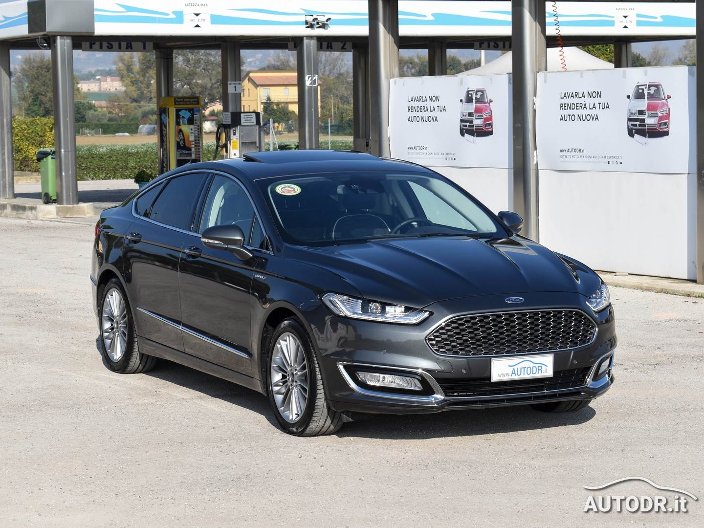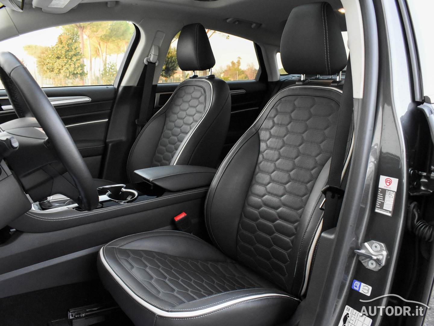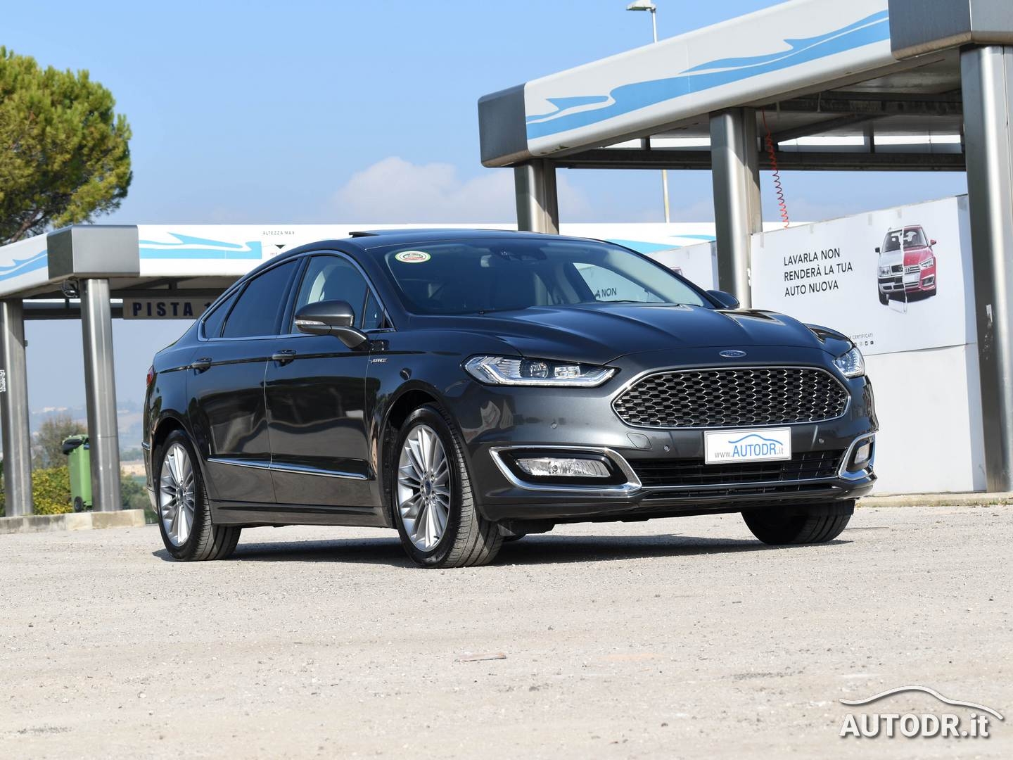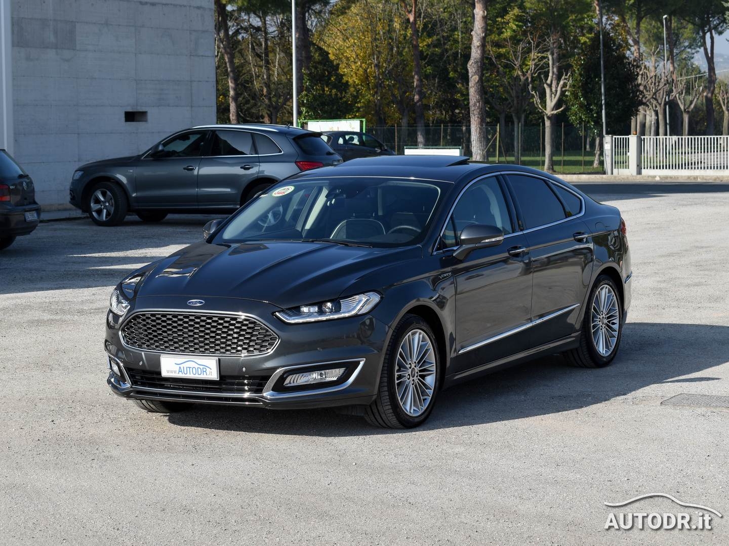 Ford Mondeo Hybrid 2.0 187cv eCVT 4p VIGNALE, anno 09/2018, 21019 km Certificati FORD, Colore Magnetic Grey Met., Interni in pelle "pienofiore" con design esagonale rifinito a mano, Cruscotto plancia e pannelli portiere rivestiti in PELLE, Sedile conducente massaggiante con regolazione elettrica a 10 vie e memorie, Sedili anteriori riscaldabili e ventilati, Tettino panoramico apribile elettricamente, Volante in pelle e multifunzione, FARI ADATTIVI LED (Dynamic LED Headlights) e Luci diurne LED, Gruppo ottico posteriore LED, Climatizzatore automatico BiZona, Parabrezza anteriore termico, Sensore luci e pioggia, NAVIGATORE CARTOGRAFICO SONY SYNC 3 con Touchscreen 8", Mirror link Apple Carplay/Android Auto per proiezione da smartphone, VivaVoce Bluetooth, Keyless entry/start apertura e chiusura portiere senza chiave + partenza a pulsante, Lane keeping Aid (con Driver Impairment Monitor e Active Steering), Riconoscimento automatico segnali stradali (Traffic Sign Recognition - TRS), Frenata automatica d'emergenza, Fari fendinebbia con funzione cornering, Assistenza alla partenza in salita (Hill Launch Assist HLA), Vetri posteriori oscurati, Sensori parcheggio anteriori e posteriori, Telecamera posteriore, Retrovisore interno fotocromatico, Specchietti retrovisori esterni con monitoraggio dell'angolo cieco (BLIS), Attacchi ISOFIX, Sedile conducente e passeggero con supporto lombare, Sistema monitoraggio pressione pneumatici, Soglie battitacco VIGNALE, 7 Airbag (fontale/laterali guida e passeggero - a tendina - ginocchia conducente), Cinture di sicurezza posteriori con airbag integrato, Controllo elettronico della stabilità ESC, Retrovisori elettrici in tinta riscaldati con luci di cortesia e ripiegabili elettricamente, 4 Finestrini Elettrici, Cerchi in lega da 18", Gommata 70% MICHELIN, VETTURA UNIPROPRIETARIO NON FUMATORE E NAZIONALE
