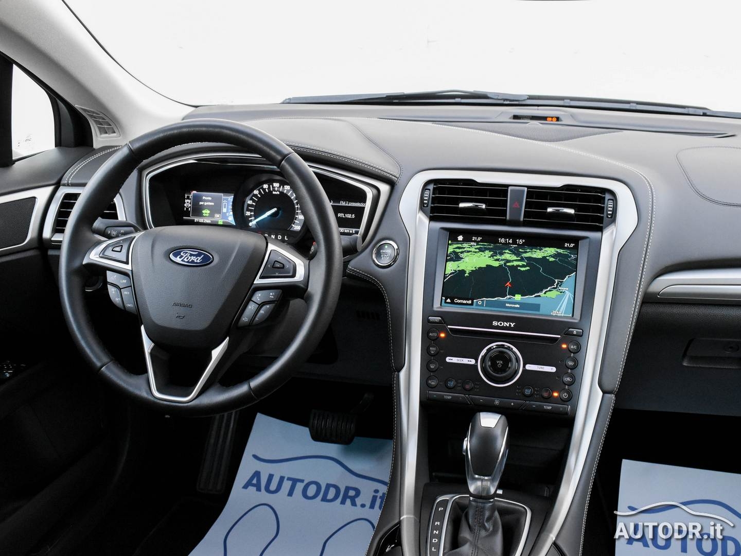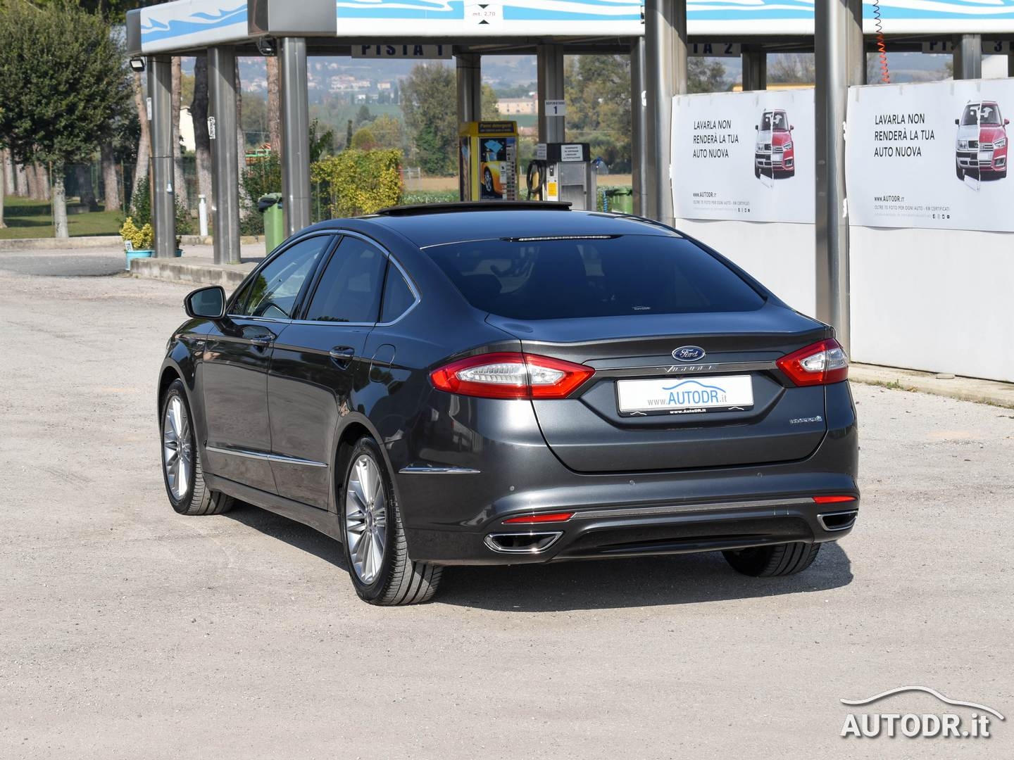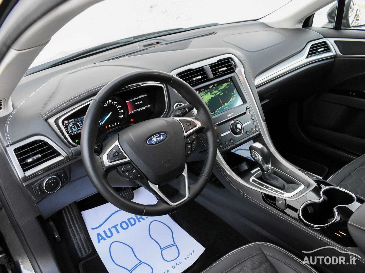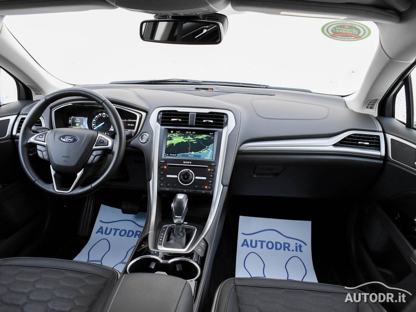 Ford Mondeo Hybrid 2.0 187cv eCVT 4p VIGNALE, anno 09/2018, 21019 km Certificati FORD, Colore Magnetic Grey Met., Interni in pelle "pienofiore" con design esagonale rifinito a mano, Cruscotto plancia e pannelli portiere rivestiti in PELLE, Sedile conducente massaggiante con regolazione elettrica a 10 vie e memorie, Sedili anteriori riscaldabili e ventilati, Tettino panoramico apribile elettricamente, Volante in pelle e multifunzione, FARI ADATTIVI LED (Dynamic LED Headlights) e Luci diurne LED, Gruppo ottico posteriore LED, Climatizzatore automatico BiZona, Parabrezza anteriore termico, Sensore luci e pioggia, NAVIGATORE CARTOGRAFICO SONY SYNC 3 con Touchscreen 8", Mirror link Apple Carplay/Android Auto per proiezione da smartphone, VivaVoce Bluetooth, Keyless entry/start apertura e chiusura portiere senza chiave + partenza a pulsante, Lane keeping Aid (con Driver Impairment Monitor e Active Steering), Riconoscimento automatico segnali stradali (Traffic Sign Recognition - TRS), Frenata automatica d'emergenza, Fari fendinebbia con funzione cornering, Assistenza alla partenza in salita (Hill Launch Assist HLA), Vetri posteriori oscurati, Sensori parcheggio anteriori e posteriori, Telecamera posteriore, Retrovisore interno fotocromatico, Specchietti retrovisori esterni con monitoraggio dell'angolo cieco (BLIS), Attacchi ISOFIX, Sedile conducente e passeggero con supporto lombare, Sistema monitoraggio pressione pneumatici, Soglie battitacco VIGNALE, 7 Airbag (fontale/laterali guida e passeggero - a tendina - ginocchia conducente), Cinture di sicurezza posteriori con airbag integrato, Controllo elettronico della stabilità ESC, Retrovisori elettrici in tinta riscaldati con luci di cortesia e ripiegabili elettricamente, 4 Finestrini Elettrici, Cerchi in lega da 18", Gommata 70% MICHELIN, VETTURA UNIPROPRIETARIO NON FUMATORE E NAZIONALE