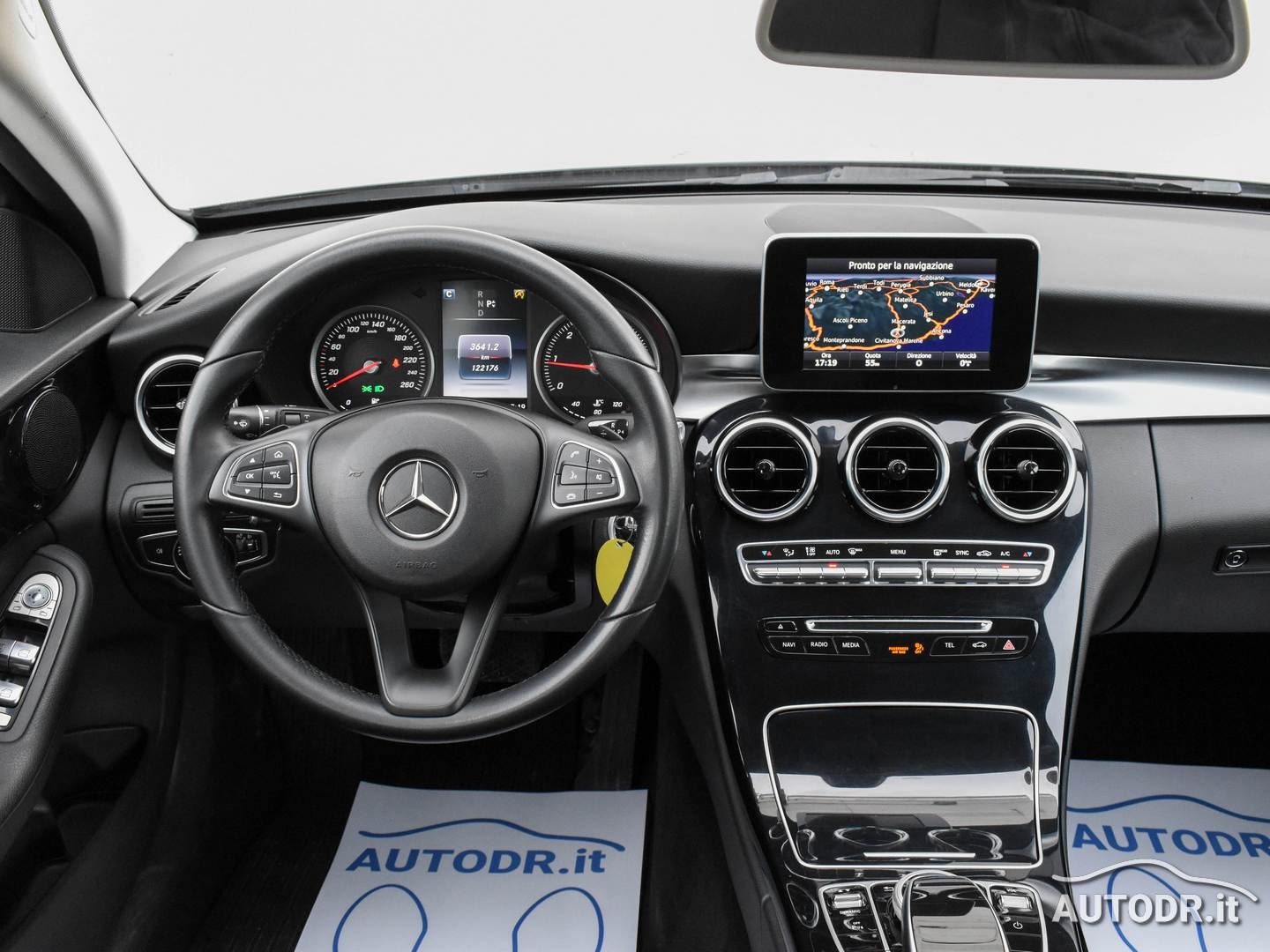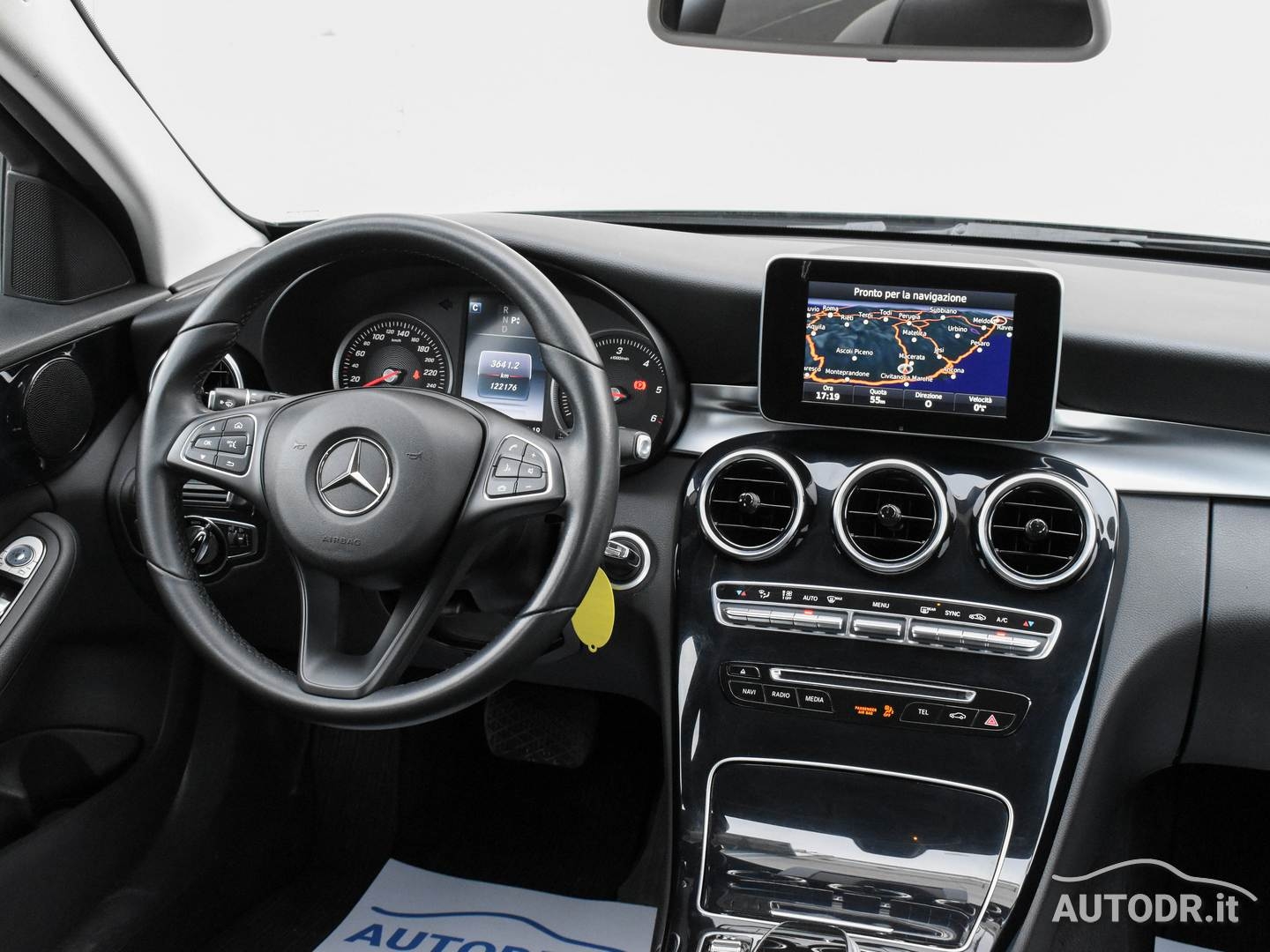 Mercedes-Benz Classe C C180d Wagon 1.6 Diesel 116cv Euro6, cambio automatico a 7 rapporti, Versione Business, anno 07/2016, KM 122080 CERTIFICATI con relativo storico manutenzioni, Colore Nero, Luci diurne LED e posizioni posteriori LED, Navigatore cartografico Mercedes con mappe Garmin, VivaVoce Bluetooth Mercedes, Sensori parcheggio ANTERIORI e POSTERIORI con visualizzazione grafica, Sedili anteriori regolabili elettricamente in altezza e inclinazione, Specchietti retrovisori esterni regolabili e riscaldabili elettricamente, Sensore Luci e Sensore Pioggia, Climatizzatore automatico BiZona, Volante multifunzione in pelle a 3 razze, Computer di bordo a colori, Cruise control, Collision Prevention Assist (sistema di allarme con funzione frenante), Assistenza partenza in salita, Sospensioni comfort, Attention assist (sistema di rilevamento della stanchezza), Freno di stazionamento elettrico con rilascio automatico, Sistema di ancoraggio ISOFIX per seggiolini dei bambini, Airbag lato passeggero disattivabile, ABS, ESP, Selettore modalità di guida, Barre al tetto cromate, Monitoraggio pressione pneumatici, Sistema di chiamata d'emergenza automatica, Cerchi in lega da 16", Gommata 70%, VETTURA NAZIONALE UNIPROPRIETARIO NON FUMATORE
