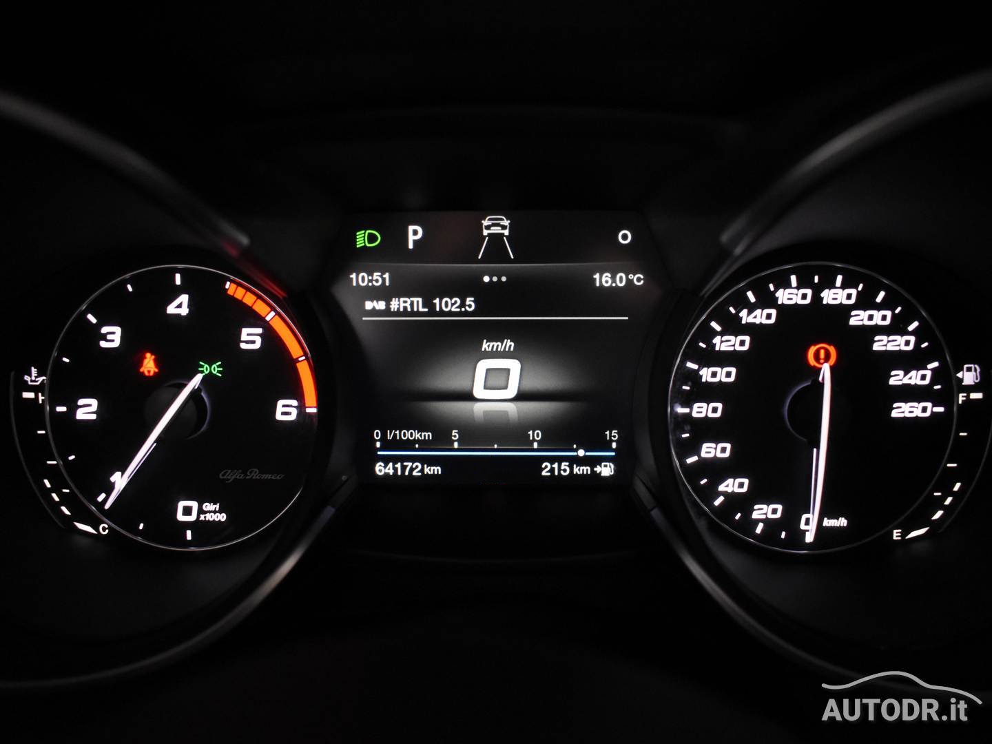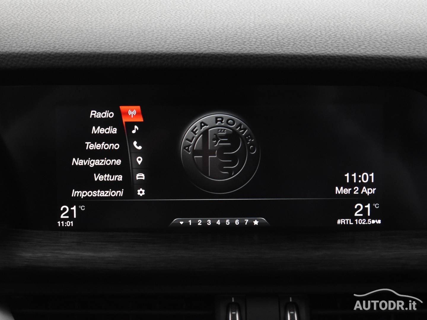 - Selettore di guida Alfa Romeo D.N.A., che permette di scegliere tra modalità Dynamic, Normal e Advanced Efficiency.