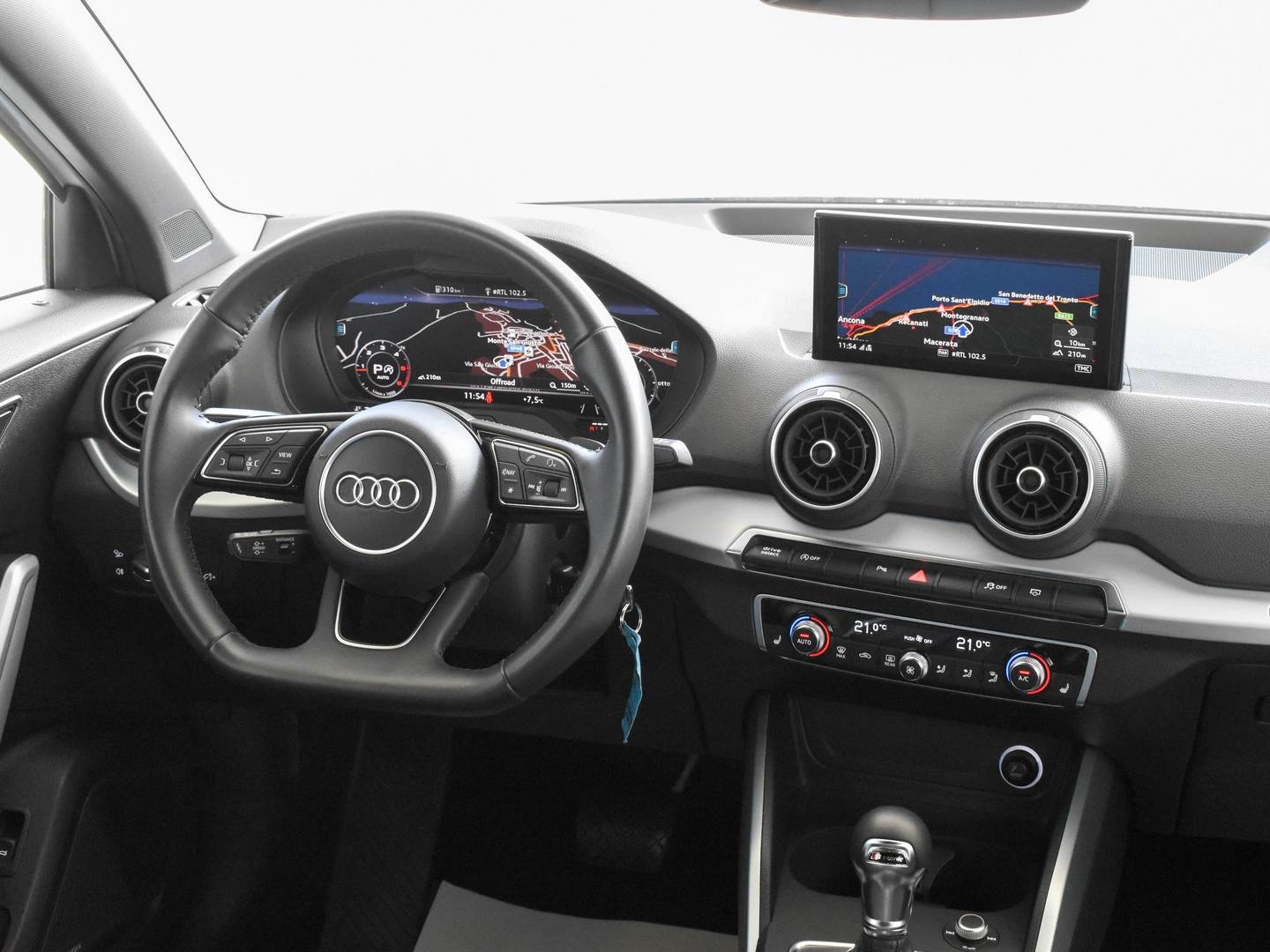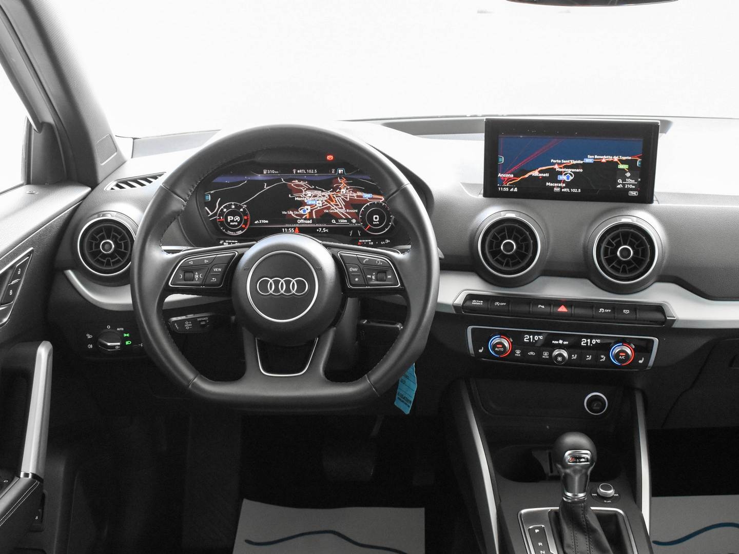 Audi Q2 2.0 TDI 190cv Euro6 QUATTRO, Cambio automatico S-tronic, anno 11/2017, km 55580 Certificati Audi con relativo storico manutenzioni ufficiale, Colore Bianco Ibis, Pacchetto estetico sportivo esterno S-LINE, Fari anteriori FULL LED con gestione automatica degli abbaglianti, Gruppi ottici posteriori LED, Frecce dinamiche, Lavafari, AUDI VIRTUAL COCKPIT (Contachilometri interamente display digitale), Interni sportivi in pelle totale Milano neri, Sedili anteriori riscaldabili, Navigatore cartografico MMI plus con MMI touch e display più grande, Ricevitore radio digitale DAB, VivaVoce Bluetooth AUDI, Volante sportivo appiattito multifunzione in pelle a 3 razze con cambio al volante, Audi DRIVE SELECT (possibilità di selezionare varie modalità di guida EFFICENCY-COMFORT-DYNAMIC-AUTO-INDIVIDUAL), Assetto con regolazione idraulica, Audi Lane Assist (Sistema di controllo fuoriuscita dalla carreggiata), Climatizzatore Automatico BiZona, Cruise control ADATTIVO (mantiene in automatico la distanza dal veicolo che precede), Audi Pre Sense (Sistema frenata d'emergenza assistita), Sensore luci e pioggia, Impianto audio Bang&Olufsen con subwoofer integrato nella ruota di scorta, Pacchetto luci ambiente, Sensori Parcheggio PLUS ANTERIORI e POSTERIORI con TELECAMERA DI RETROMARCIA, Specchietto retrovisore interno fotocromatico, Specchietti esterni riscaldabili e richiudibili elettrici, Vetri posteriori oscurati, Portellone posteriore elettrico, Attacchi ISOFIX con airbag passeggero disattivabile, Modanature interne in alluminio opaco spazzolato, Monitoraggio pressione pneumatici, Cerchi in lega da 19" Audi Sport, Vettura ITALIANA UNIPROPRIETARIO NON FUMATORE