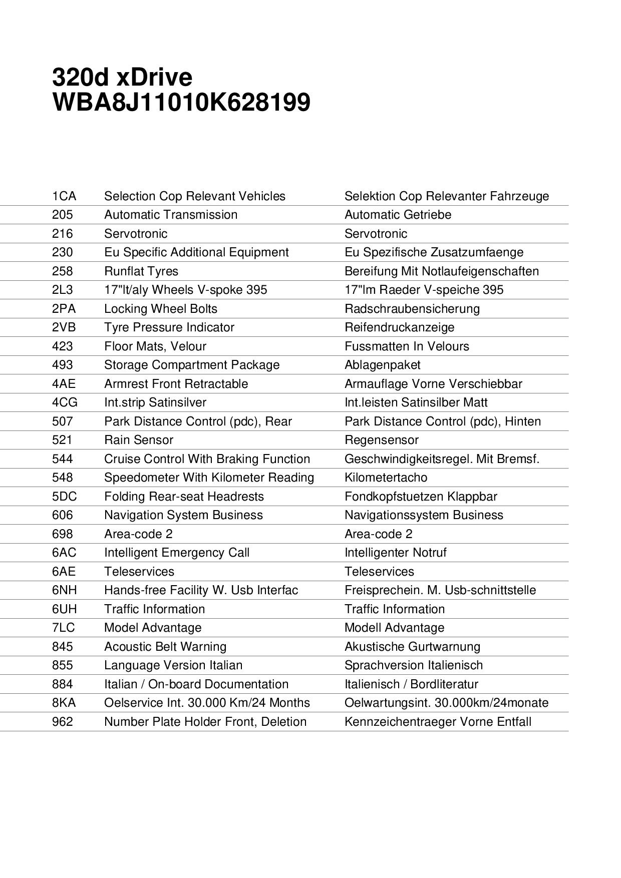 TELAIO: WBA8J11010K628199 - TARGA:FC438VN