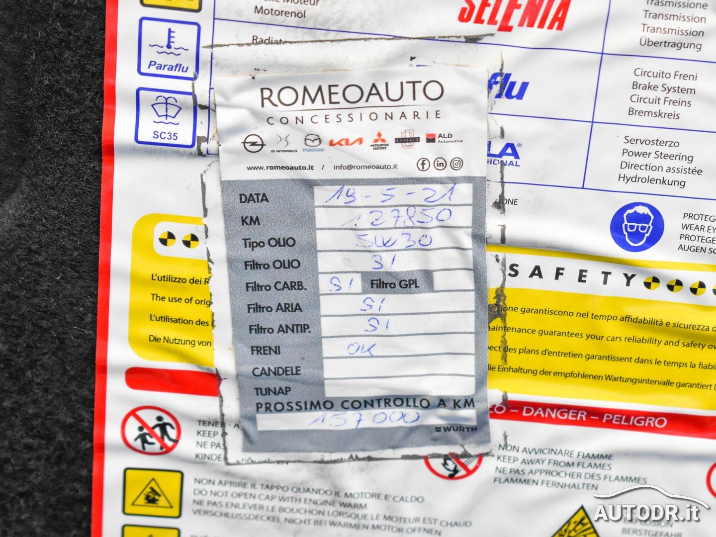 Inoltre riportiamo sia nel contratto, che nella fattura di vendita i chilometri percorsi. Importantissimo nell'acquisto delle auto usate richiedere al venditore lo storico manutenzioni con la relativa documentazione (libretto service - fatture diffidate da chi non ve li mette a disposizione.
