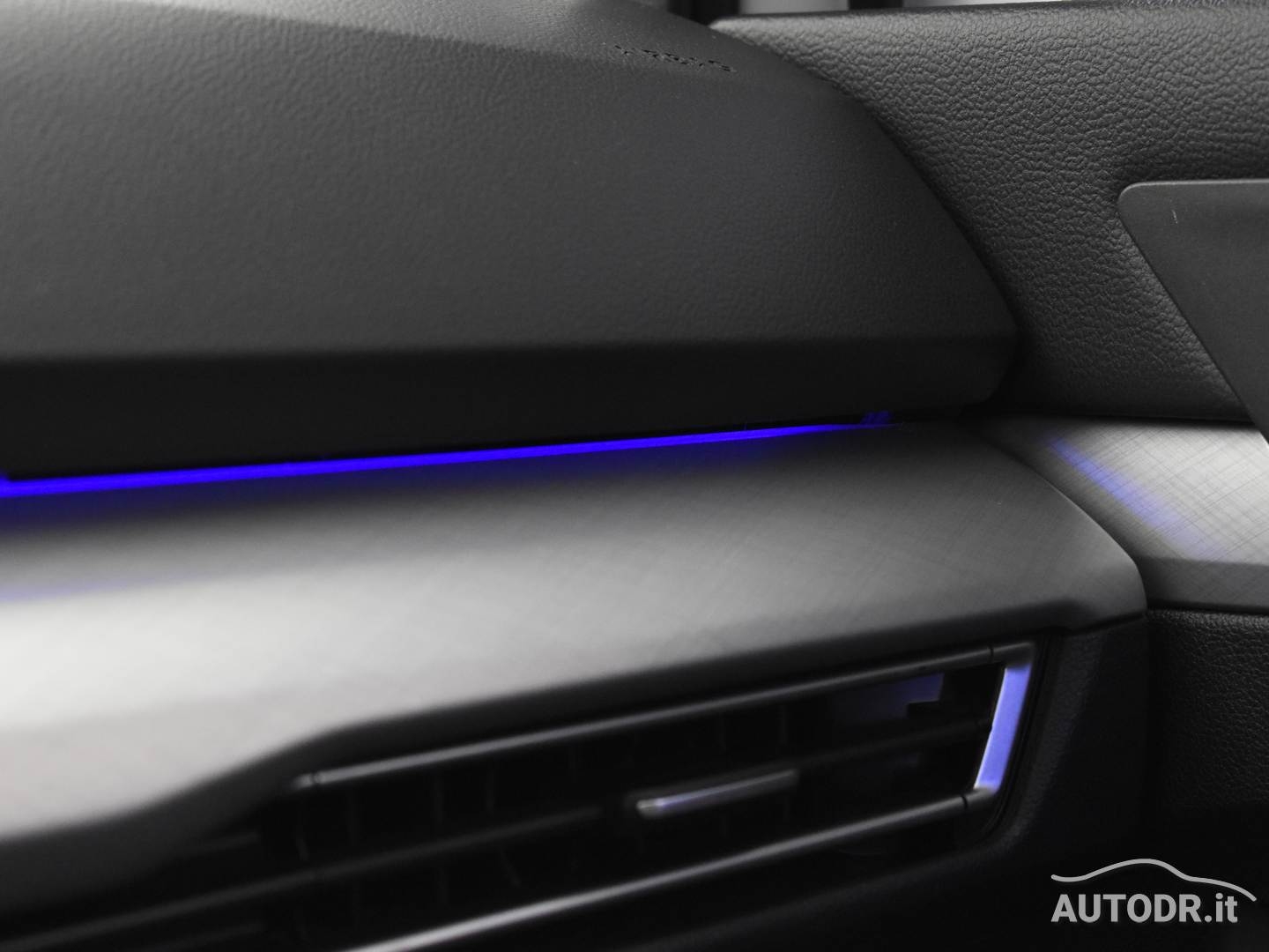 Interni curati con volante multifunzione in pelle a 3 razze e atmosfera interna personalizzabile grazie alle luci ambiente a 10 colorazioni.