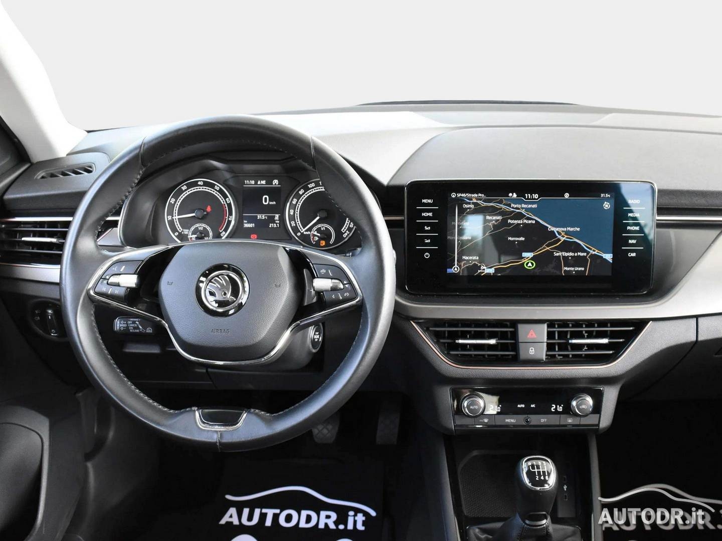Interni confortevoli e curati, con supporto lombare, volante multifunzione in pelle, bracciolo centrale anteriore Jumbo-Box e luci ambiente.