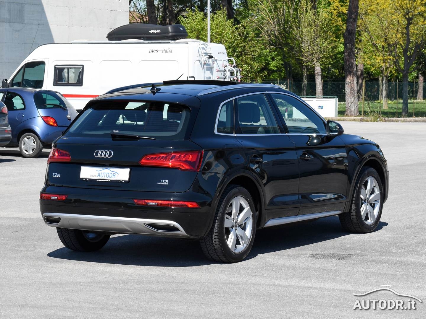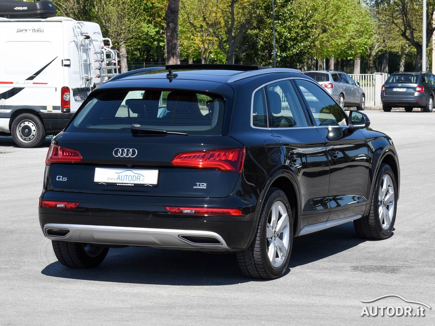 Audi Q5 2.0 TDI 190cv Euro6 QUATTRO Business Sport, Cambio automatico S-tronic a 7 rapporti, anno 10/2017, km 98485 Certificati con TAGLIANDI UFFICIALI AUDI, Colore Nero Mythos Met, Interni misto pelle ed alcantara, Sedili anteriori con memorie e regolazione lombare elettrica, Tetto panoramico apribile elettricamente, Adaptive air suspension (regolazione elettronica dell'assetto e dell'altezza dell'auto), Pacchetto luci ambiente multicolore, Cielo interno nero, Fari anteriori FULL LED, Gruppo ottico posteriore LED con frecce dinamiche, AUDI VIRTUAL COCKPIT (Contachilometri interamente display digitale), Audi Smartphone Interface (Android Auto e Apple Carplay), Ricevitore radio DAB+, Navigatore cartografico MMI plus con MMI touch e display più grande con Hard Disk interno per salvare la musica, Audi MUSIC INTERFACE (PER GESTIRE I-POD O USB), lettori SdCard per Mp3, Impianto audio Audi Sound System (Amplificatore a 6 canali, 10 altoparlanti e subwoofer integrato nella ruota di scorta potenza totale 180 Watt), VivaVoce Bluetooth AUDI, Lettore cartelli stradali, Volant