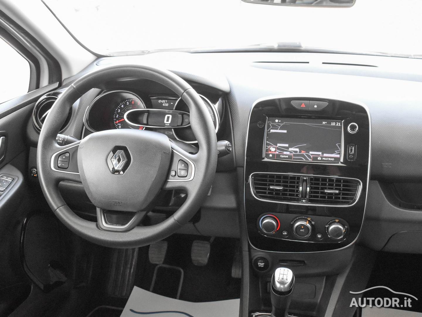 Renault Clio 0.9 TCe 90cv GPL, cambio manuale 5 marce, anno 09/2017, km 104.269 certificati, colore Bianco, Fendinebbia, Climatizzatore, Sensori di parcheggio posteriori, Navigatore cartografico con schermo touch screen da 7 pollici, Vivavoce Bluetooth, Specchietti retrovisori regolabili elettricamente, Volante multifunzione, Sensore luci e pioggia, Cruise Control, Assistenza alla frenata di emergenza, Monitoraggio pressione pneumatici, Attacchi ISOFIX, Cerchi in lega
