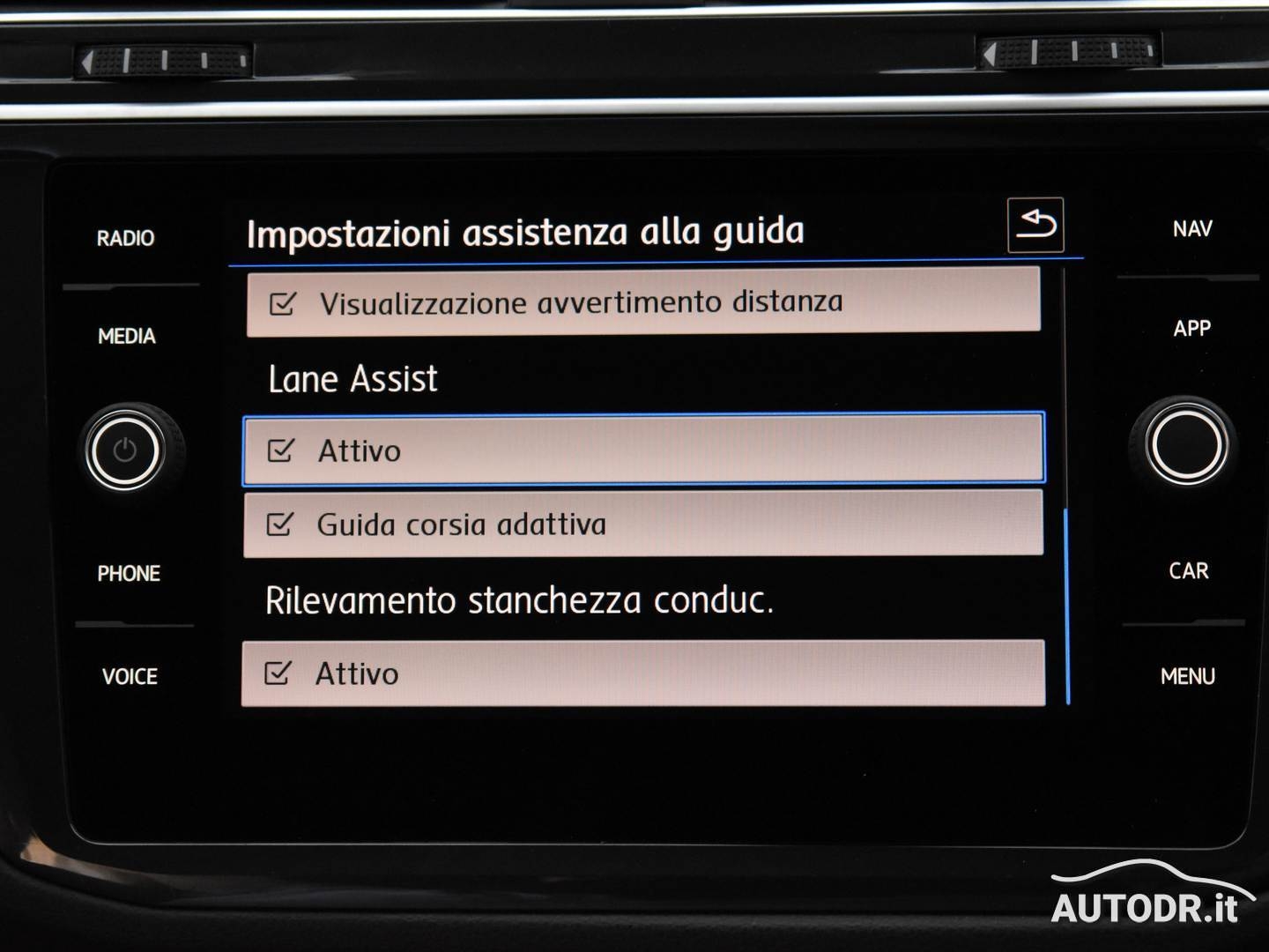 - Lane Assist: controllo attivo di fuoriuscita dalla carreggiata, che aiuta a mantenere la traiettoria in autostrada.