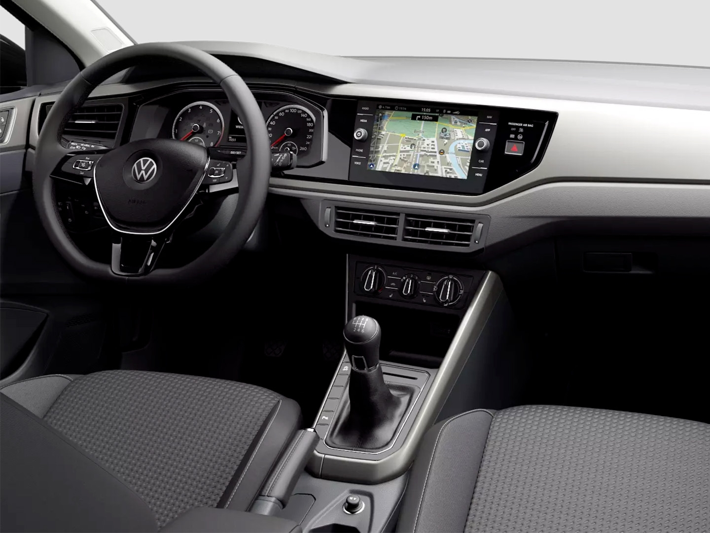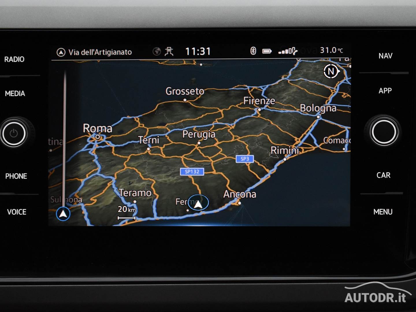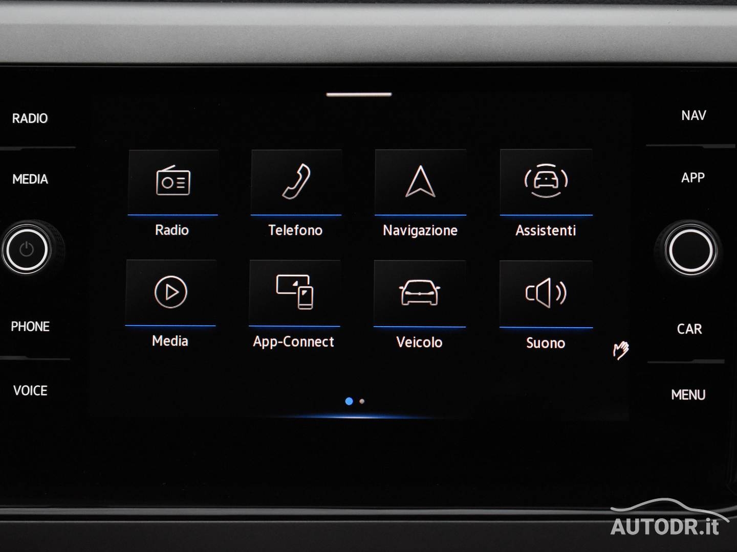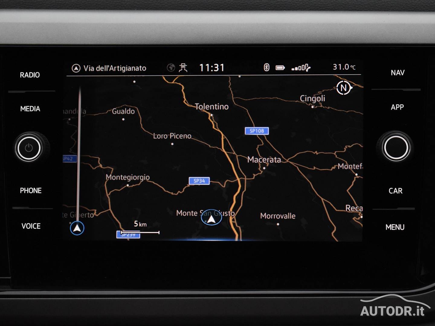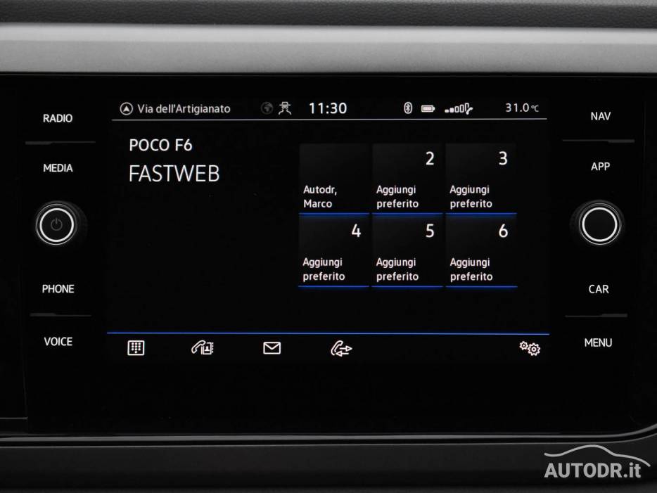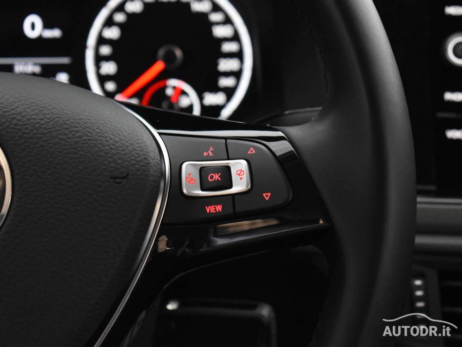 Volante multifunzione in pelle e navigatore cartografico Touch Screen Volkswagen Discover Media, per una gestione intuitiva di comandi e percorso.