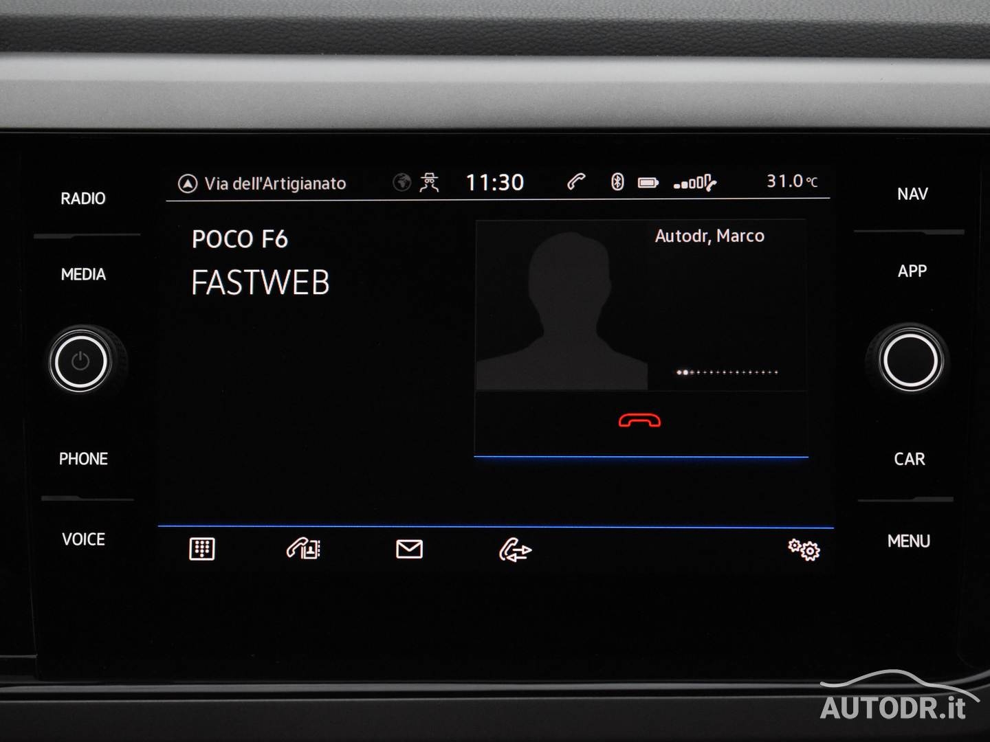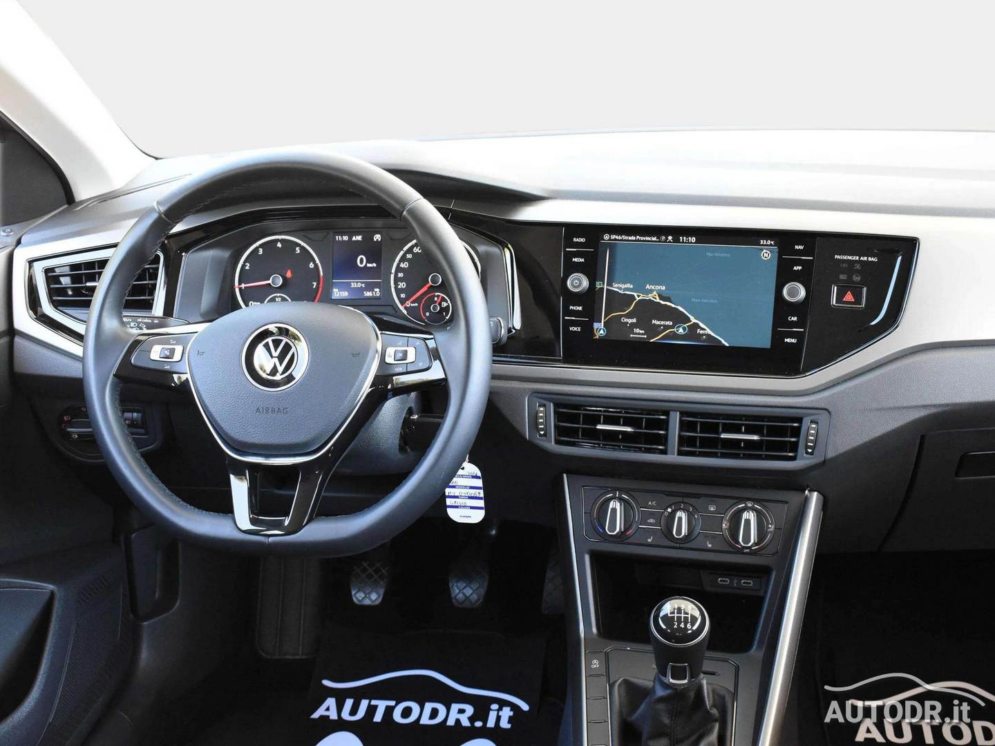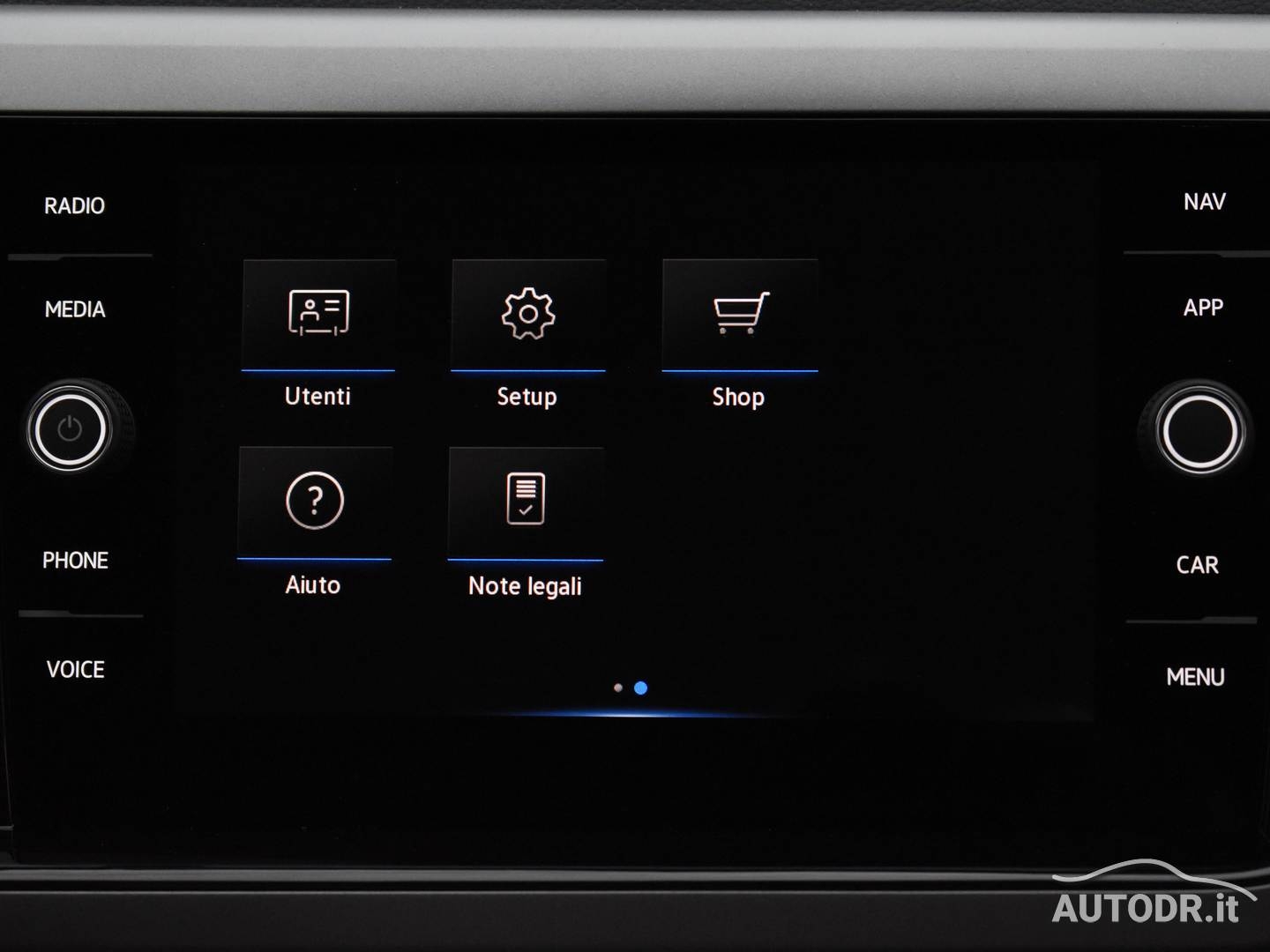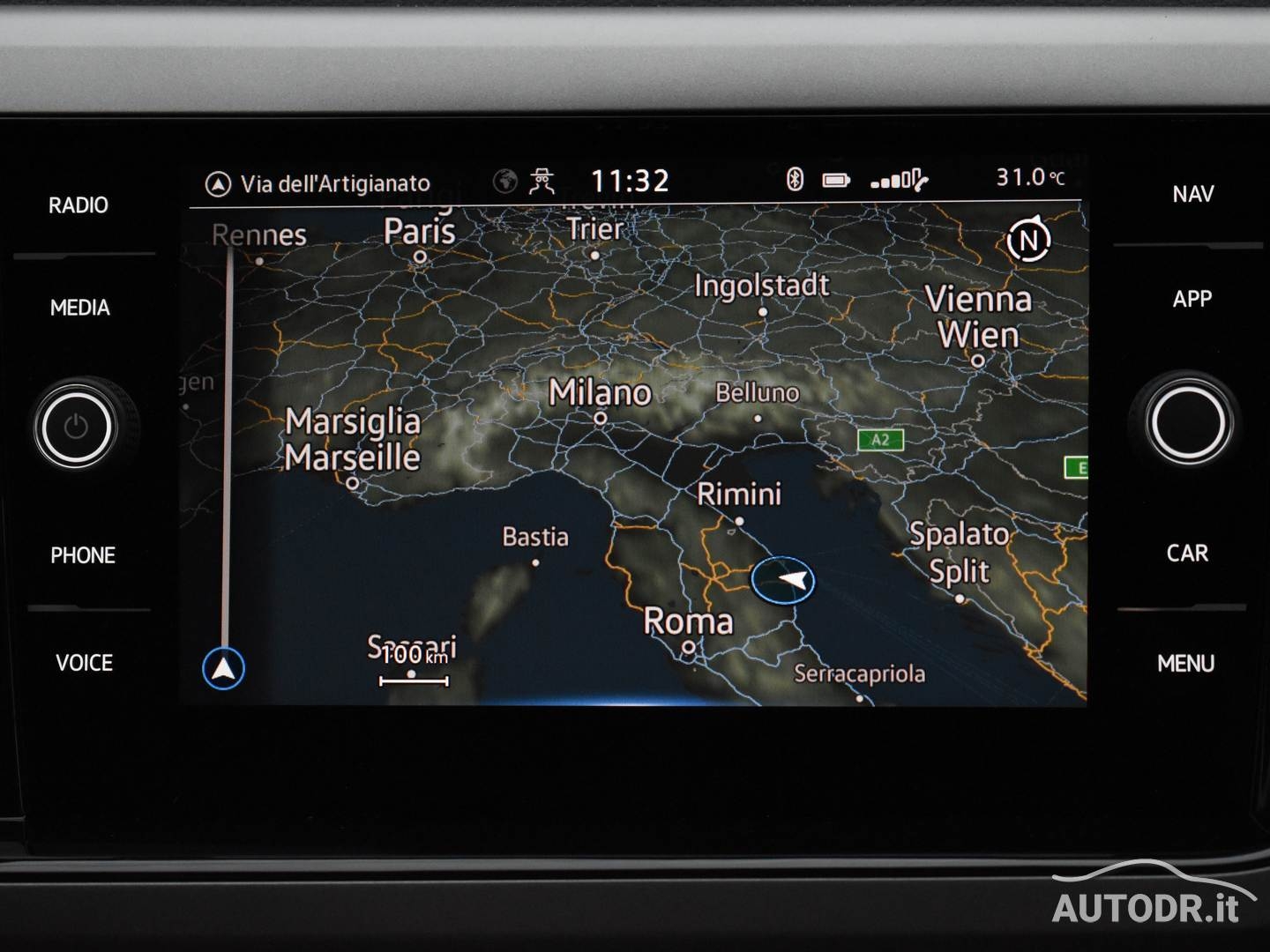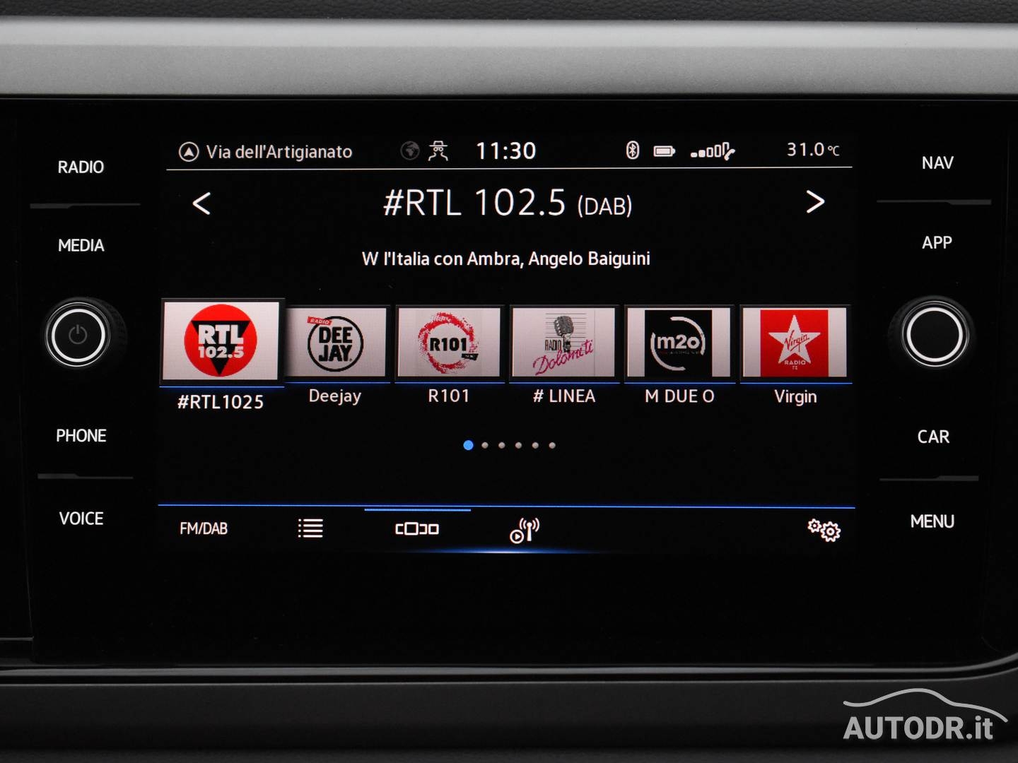 Volante multifunzione in pelle e navigatore cartografico Touch Screen Volkswagen Discover Media, per una gestione intuitiva di comandi e percorso.